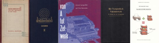 3. J. van der Lamp & C.H. Lindeboom: Het typografisch vakonderricht in verband met het leerlingwezen. Samengebonden cursussen met vragenlijsten. Ca. 1930. Linnen. 176 p.