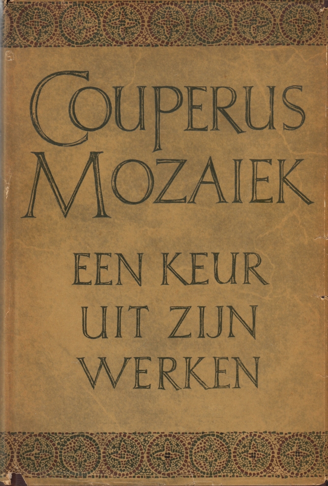 12. COUPERUS, Louis Mozaiek. Een keur uit zijn werken. Rotterdam-Den Haag-Amsterdam, Nijgh & Van Ditmar-L.J. Veen, 1949. 24 x 16 cm. Linnen met stofomslag. 912 p. Band- en stofomslagontwerp van Ben Aalbers. Nawoord G.H. ‘s-Gravesande. 1e druk. Omslag aan de randen licht beschadigd.