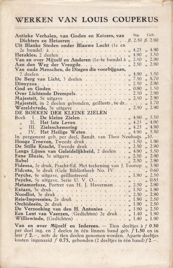 * Met op de colofonpagina een riante, eigenhandige pennenstreek van Couperus in paarse inkt.