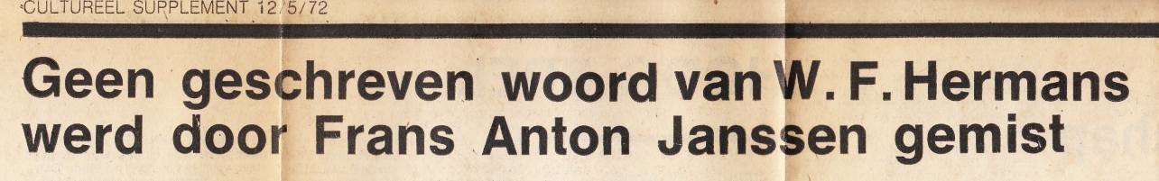* Met inliggend handgeschreven briefje: ‘In dank,/ Frans Janssen’. Zeer onderhoudend.