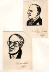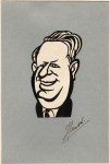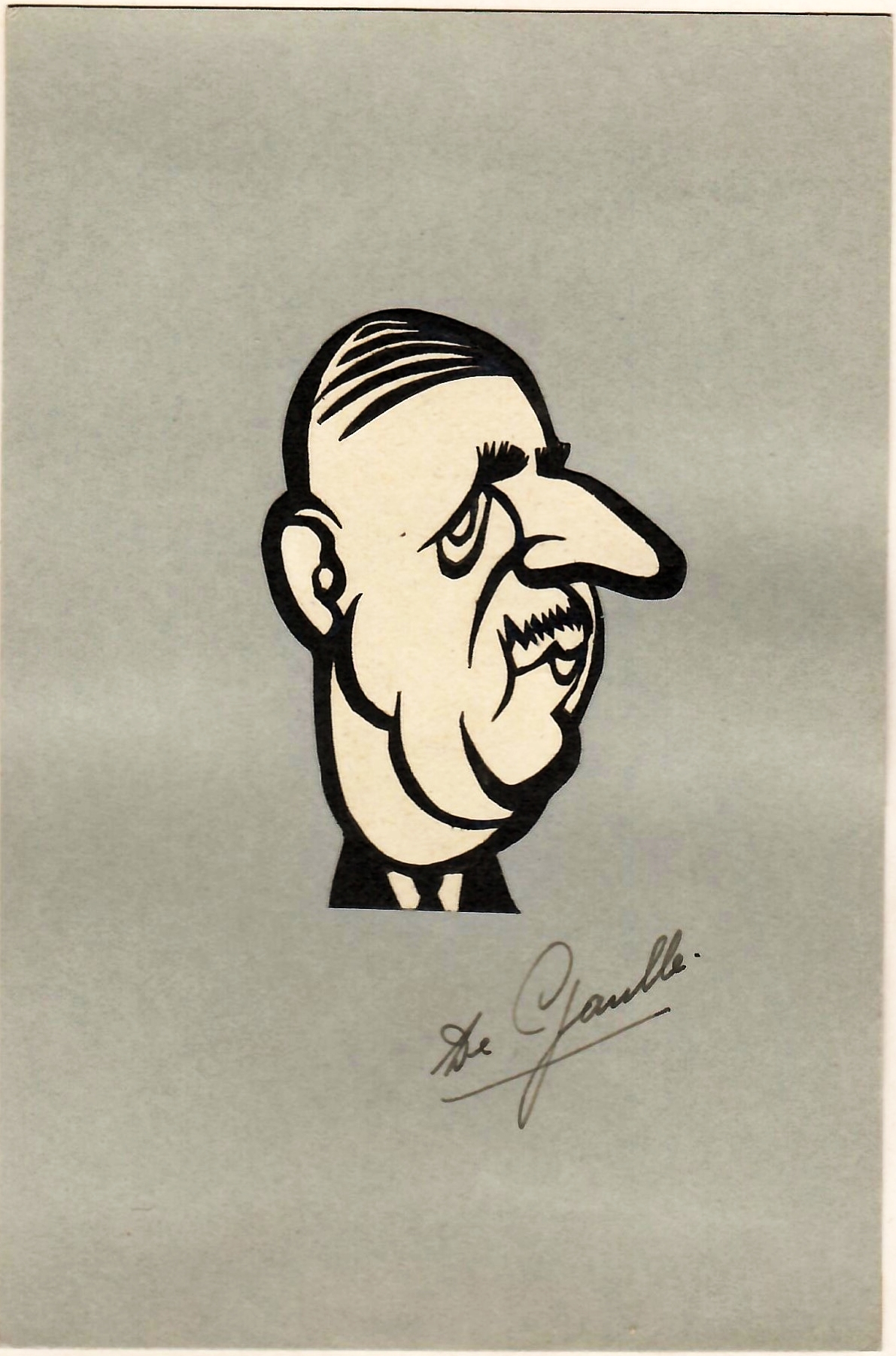 20. (KNIPKUNST) 37 karikaturen van buitenlandse politici, met de schaar geknipt uit zwart papier en op witte of grijze kaarten geplakt. Ca. 1960-1965. Op 33 bladen geplakt (23 x 16 cm). De karikaturen meten ca. 8 x 5 cm. Bij alle is de naam in balpen bijgeschreven. Alle in goede staat.