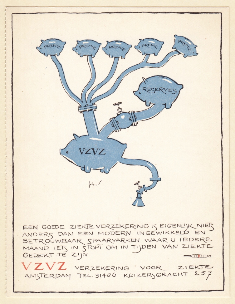 * De VZVZ, Verzekering Voor Ziekte, werd opgericht door twee neven van Jo Spier in 1935. Deze inventieve advertenties dateren van de begintijd. De maatschappij bestaat nog steeds!