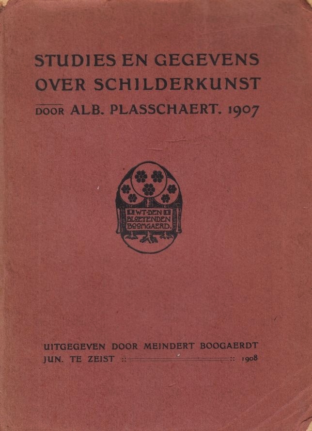28. PLASSCHAERT, Alb. Studies en gegevens over schilderkunst. Zeist, Meindert Boogaerdt, 1908. Ingenaaid. 112 p. Frontispice door Willem van Konijnenburg. 1e druk. Rug versleten, omslag wat flapperig.
