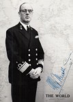 36. SCHATTE OLIVIER, A.H.J. Originele foto met getypt, gesigneerd briefje aan een verzamelaar. Zwartwitfoto (18 x 13 cm) van de marineofficier vóór een wereldkaart, in balpen gesigneerd. Achterop een stempel met Copyright Koninklijke Marine. De brief is bedrukt met ‘Pugno pro Patria [=Ik strijd voor het Vaderland]/ Bevelhebber der Zeestrijdkrachten’. Gedateerd 6 april 1964. 5 regels, aan een verzamelaar, die hij met ‘je’ aanspreekt.