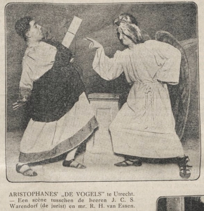 (PS. Zojuist vonden we op Delpher als bevestiging de hier links afgebeelde leuke krantenfoto met J.C.S. Warendorf als toneelspeler, samen met een kompaan die eveneens jurist-acteur was. Bron: De Sumatra Post, 26 november 1925).