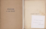 37. (PERRON, E. du). CHOUX, Jules Stances a la Nuit. (Privé-uitgave van E. du Perron in 30 exemplaren). [Brussel, E. du Perron, ca. 1925]. Geniet. (20) p. Gedrukt [door Breuer te Brussel] in een oplage van 30 door de uitgever genummerde exemplaren. Binnenwerk roestvlekkig. Bibliografische aantekening op binnenzijde omslag. Met los notitievelletje, beschreven door Gerrit Komrij: ‘ex libris G. Legman/ (aantekening in zijn/ handschrift)’.