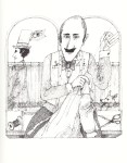 * Dick Dooijes in Repro en Druk van 11 april 1980: ‘Het zijn knappe illustraties, waarmee Alfons van Heusden het door hem ook typografisch verzorgde verhaal versierde van Valéry Larbaud, ‘De arme hemdenmaker’ – in de Nederlandse vertaling van Ed. du Perron. Ietwat zwemend naar het absurde in de wijze van voorstelling, in vloeiende penlijnen neergeschreven en fraai van zwart-witwerking sluiten ze goed aan bij de asymmetrische, maar tevens rustige rangschikking van de tekst’. Leeflang 111.