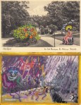 * Alleraardigste collectie kaarten, alle voorzien van grappige aanvullingen en inkleuringen met pen en gouache, zoals zwemmers, zeemeerminnen, weergoden en feestvlaggen: 14 originele tekeningen dus!
