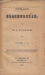 * Nota bene, dit is geen boek zonder titel, maar voorop is gedrukt: ‘Titelloos brochuretje’! Nogal curieuze boekhandelscatalogus van de in Engeland geboren Nederlandse boekhandelaar Benjamin Suggitt Nayler (1796-1875). Twaalf collecties gemengde boeken, voorafgegaan door een flinke ruziepartij met zijn collega M.H. Schonekat. Aan het eind gevolgd door een reeks uitroepen en verzuchtingen over het boekenvak. Nayler kwam voor de liefde naar Nederland – hij trouwde met Maria Elisabeth Liernur, een dochter van de schilder Alexander Liernur; zij zelf schilderde ook verdienstelijk. Nayler, een welsprekende, indrukwekkende persoonlijkheid, was in Nederland actief als boekhandelaar en uitgever van 1820-1848 en werkte daarna in Engeland en Wales. In 1865 verhuisde hij naar Australië.