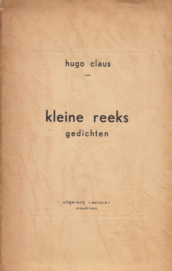 * Het zeldzame poëziedebuut van Hugo Claus, met negentien klassiek-rijmende verzen, waarvan ‘Ik heb de dieren te eten gegeven…’ in druk is opgedragen aan zijn jonge vriend Roger Raveel. Achter de uitgeverij ging Jozef Claus schuil, de vader van de dichter. In zekere zin een uitgave in eigen beheer. BHC 1.A.
