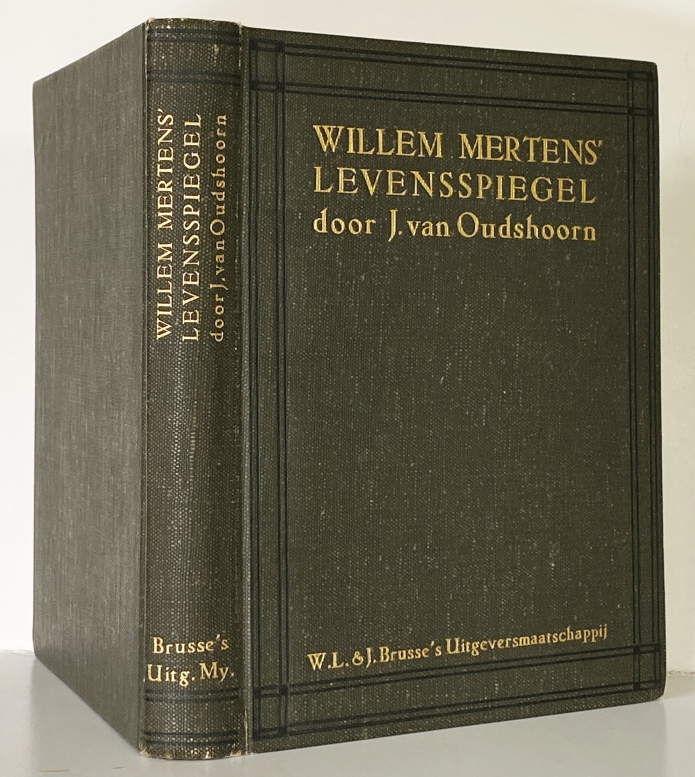 11. OUDSHOORN, J. van Willem Mertens’ levensspiegel. Rotterdam, W.L. & J. Brusse, 1914. Linnen. (4), 200 p. [Gedrukt in een oplage van 500 exemplaren, waarvan slechts 100 gebonden in deze eerste band]. 1e druk. Debuut. Naamstempeltje op titel. Mooi exemplaar.