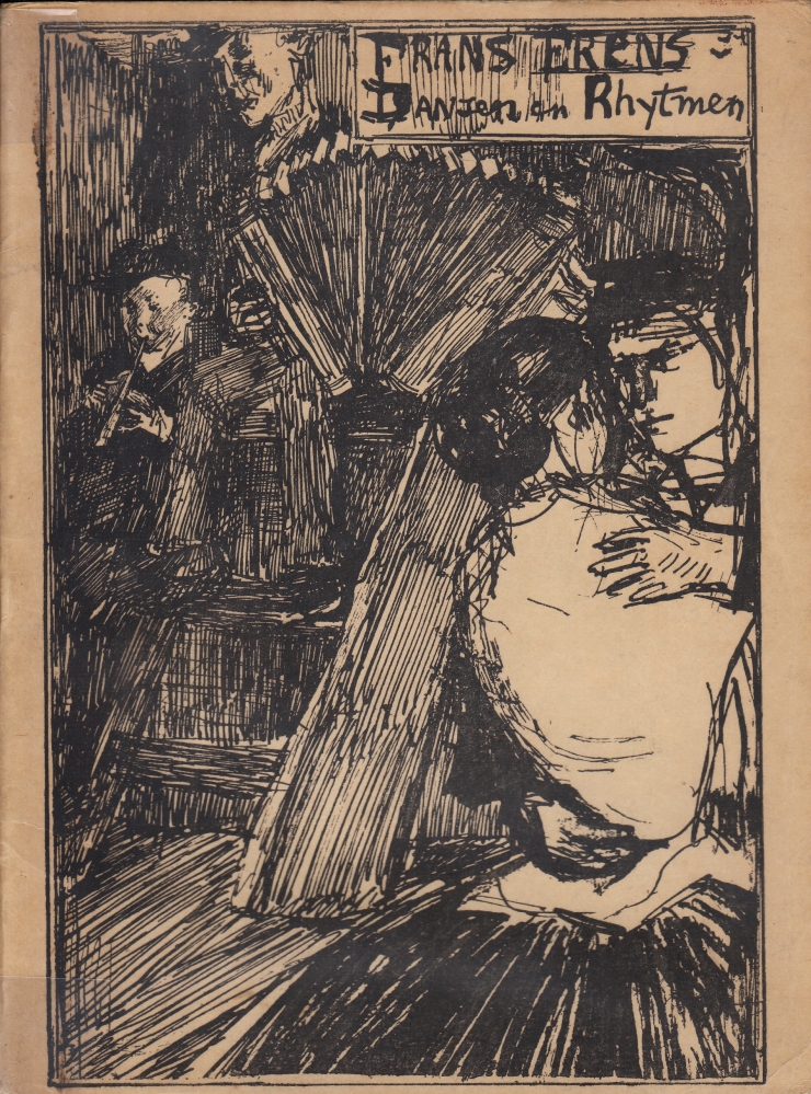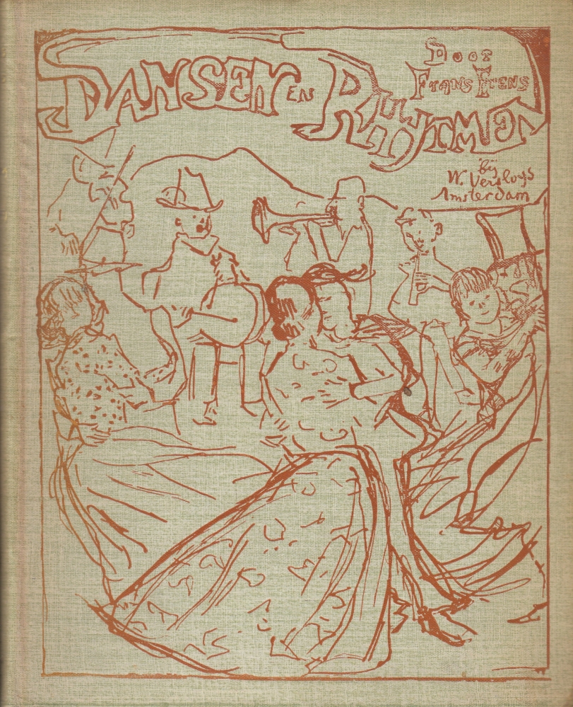 7. (ISRAËLS, Isaac). Frans ERENS Dansen en Rhytmen. Amsterdam, Versluys, [1891]. Linnen (bandontwerp van Isaac Israëls). (4), 136 p. 1e druk. Een paar kleine bobbeltjes in de achterste kneep, maar een opvallend mooi en fris exemplaar.