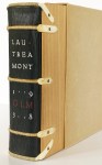 7. LAUTRÉAMONT, Comte de Oeuvres complètes. Contenant les Chants de Maldoror, les Poésies, les Lettres. Une introduction par André Breton. Des illustrations par Victor Brauner, Oscar Dominguez, Max Ernst, Espinoza, René Magritte, André Masson, Matta Echaurren, Joan Miro, Paalen, Man Ray, Seligmann, Tanguy. Une table analytique. Des documents. Répercussions. Paris, GLM, 1938. Leather-backed plain wooden covers with uncoloured leather strips, in a slipcase (Pau Bindery). XVI, 428 p. Partly unopened. Printed in 1120 numbered copies.