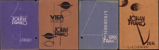 The painter Dick Ket (1902-1940) was best known for his still lifes and self-portraits, but he also proved to be a great typographical talent. Ket and Franco (1908-1988) were friends and corresponded frequently. In 1935, Franco emigrated to the United States. Franco performed these four songs in New York in 1938, but he also embarked on a long and prolific career as an American composer.