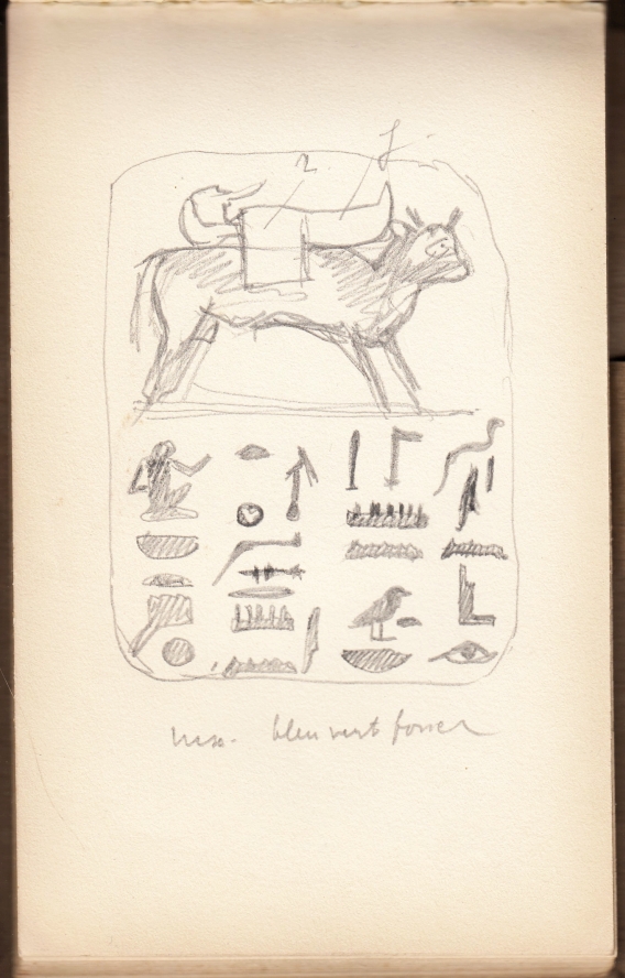 In deze schetsboeken zien we De Mot van heel dichtbij, het zijn persoonlijke notities die nooit voor de openbaarheid bestemd waren. Al vanaf zijn zeventiende maakte hij schetsen van gebouwen of straatgezichten: bijvoorbeeld in Bonn of Hildesheim – kastelen en kerken. Soms zijn er ook schetsen van mensen en dieren, karikatuurtjes, portretjes, karakteristieken. Een substantieel deel van de tekeningen is kennelijk in musea (oude kunst) gemaakt, en er staat dan veel (moeilijk leesbare) tekst bij. Hier en daar zien we Egyptische kunst, maar ook onderdelen van Griekse tempels, en er is een zichtje op het Parthenon bij. Een van de schetsboeken bevat veel zelfportretten, meer en minder uitgewerkt, waaronder enkele naakten. Het laatste schetsboek heeft een soort titelpagina: Croquis, met het jaar 1897. Daarin liggen de latere schetsjes, waarop onder andere zijn vrouw en zijn dochter Eléonore (1903-1987) zijn afgebeeld. Eléonore trouwde in 1929 met Jean Bille en zou zelf ook kunsthistorica worden. In de jaren vijftig en zestig publiceerde ze enkele fotoboeken over klassieke en Egyptische kunst onder de naam ‘E. Bille-De Mot’. En het kan best zijn, dat zij de jeugdige tekenares van de schets naar Carpeau was en daarmee in de voetsporen van haar vader trad.
