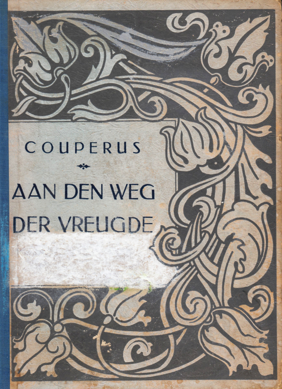 7. COUPERUS, Louis Aan den weg der vreugde. Amsterdam, Veen, [1908]. Halflinnen met jugendstilversiering (zogenaamde ‘behangband’). (4), 208 p. 1e druk. Matig exemplaar: nummertjes op de rug geplakt, stickers van de band verwijderd, twee moderne exlibris (een van de schermer Paul Kal, 1927-2011), plakstripje, handgeschreven bibliotheeknummer.