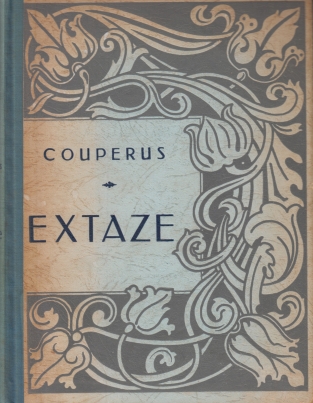 11. COUPERUS, Louis Extaze. Een boek van geluk. Amsterdam, Veen, [1905]. Halflinnen, de ‘behangband’. (8), 172 p. 3e druk. Rond rug verbruind. Buitenste pagina’s roestig. Naam voorin: P.T. van ’t Spijker.