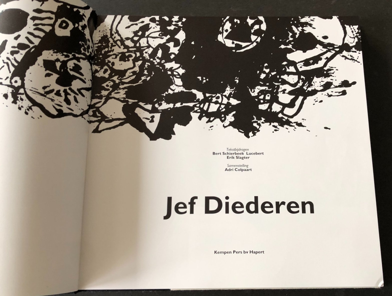 11. (DIEDEREN, Jef). LUCEBERT, Bert SCHIERBEEK e.a. Jef Diederen. (Top-editie met originele kunst en met een gesigneerde opdracht). Hapert, Kempen Pers, (1991). 30 x 30 x 4 cm. Linnen met stofomslag in zwarte linnen overslagdoos. 160 p. Rijk geillustreerd. Wat veegjes en lichte gebruikssporen op de overslagdoos. Miniscuul deukje rechtsonder in de eerste 20 bladzijden (zie de foto).