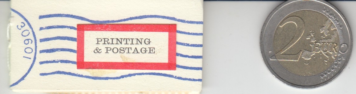 37. (MINIATUURUITGAVE). DUENSING, Paul Hayden Printing & Postage. Homage to Printers & their Contribution to our Postal System. [Kalamazoo, MI], eigen beheer, 1996. Oblong 26 x 53 mm (!). Cahiersteek. (16) p. incl. omslag. Met de hand gezet uit twee 6-punts lettertypen. Ingeplakt is een postzegel met afbeelding van Benjamin Franklin in actie aan een 18e-eeuwse drukpers. 1e druk.