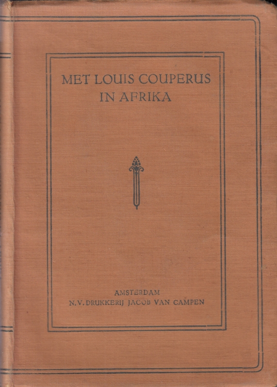 7. COUPERUS, Louis Met Louis Couperus in Afrika. Amsterdam, N.V. Drukkerij Jacob van Campen, [1921]. Geelbruin linnen met kelk-zwaardvignet. 144 p. 1e druk. Bovenaan de rug wat slijtage.