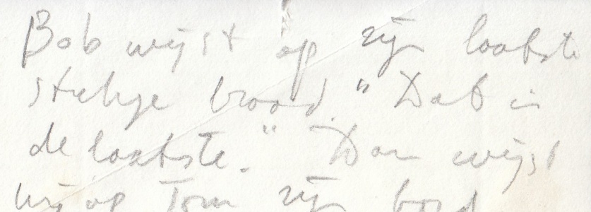 39. WOLKERS, Jan (Anekdote over Bob en Tom). Handschrift in potlood. Ca. 9 x 10,0 cm.