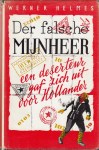 14. HELMES, Werner Der falsche Mijnheer. Bussum, F.G. Kroonder, [1958]. Linnen met stofomslag. 272 p. 1e druk. Omslag aan de voorkant mooi, maar aan de bovenkant van de rug en de achterzijde beschadigd. Vage vlekken op de band.