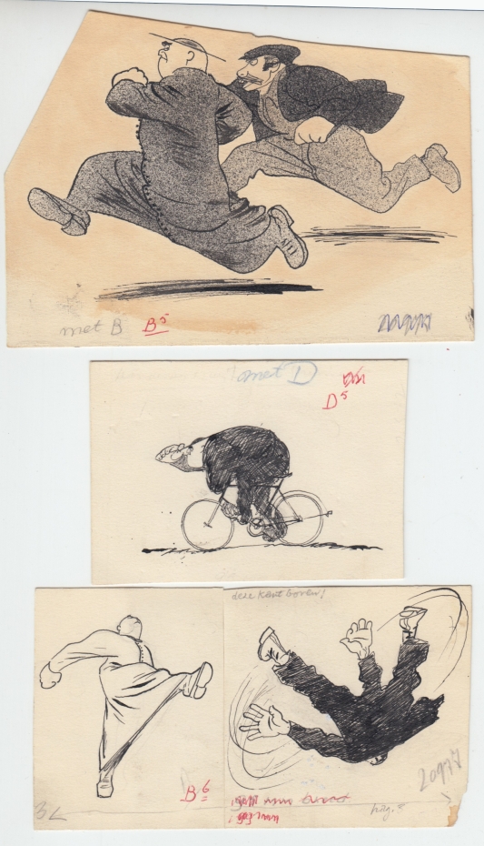 37. THOLE, Karel Dertig originele pentekeningen voor de Nederlandstalige reeks over Don Camillo. Formaten variërend van ca, 6,5 x 8,5 tot 22,5 x 17 cm. Veelal voorzien van aantekeningen m.b.t. het verkleiningspercentage en de pagina waarop de tekening moest worden afgedrukt.