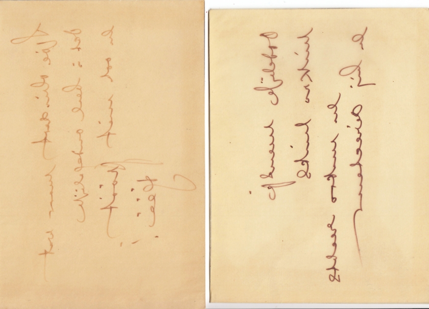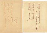 32. SCHAGEN, J.C. van Twee handgeschreven ‘kalligrammen’. 11 x 17 cm. Geschreven op calqueerpapier en vervolgens in spiegelbeeld bevestigd op twee kartonnetjes, zodat je ze met een spiegel kan lezen.