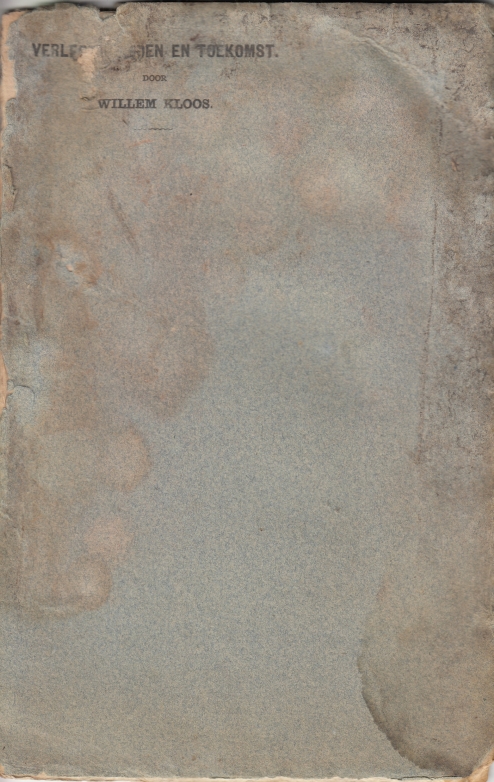 16. KLOOS, Willem Verleden, heden en toekomst. [Amsterdam, W. Versluys, april 1891]. Ingenaaid. 16 p. 1e druk. Zeer slecht exemplaar met fikse water- en schimmelschade! Inmiddels is de schimmel niet meer actief.