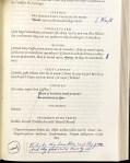 – Kladblaadje met drie commentaren op de vertaling in rode balpen, in hetzelfde handschrift als in het boek, hoogstwaarschijnlijk van een redacteur van de Bij.