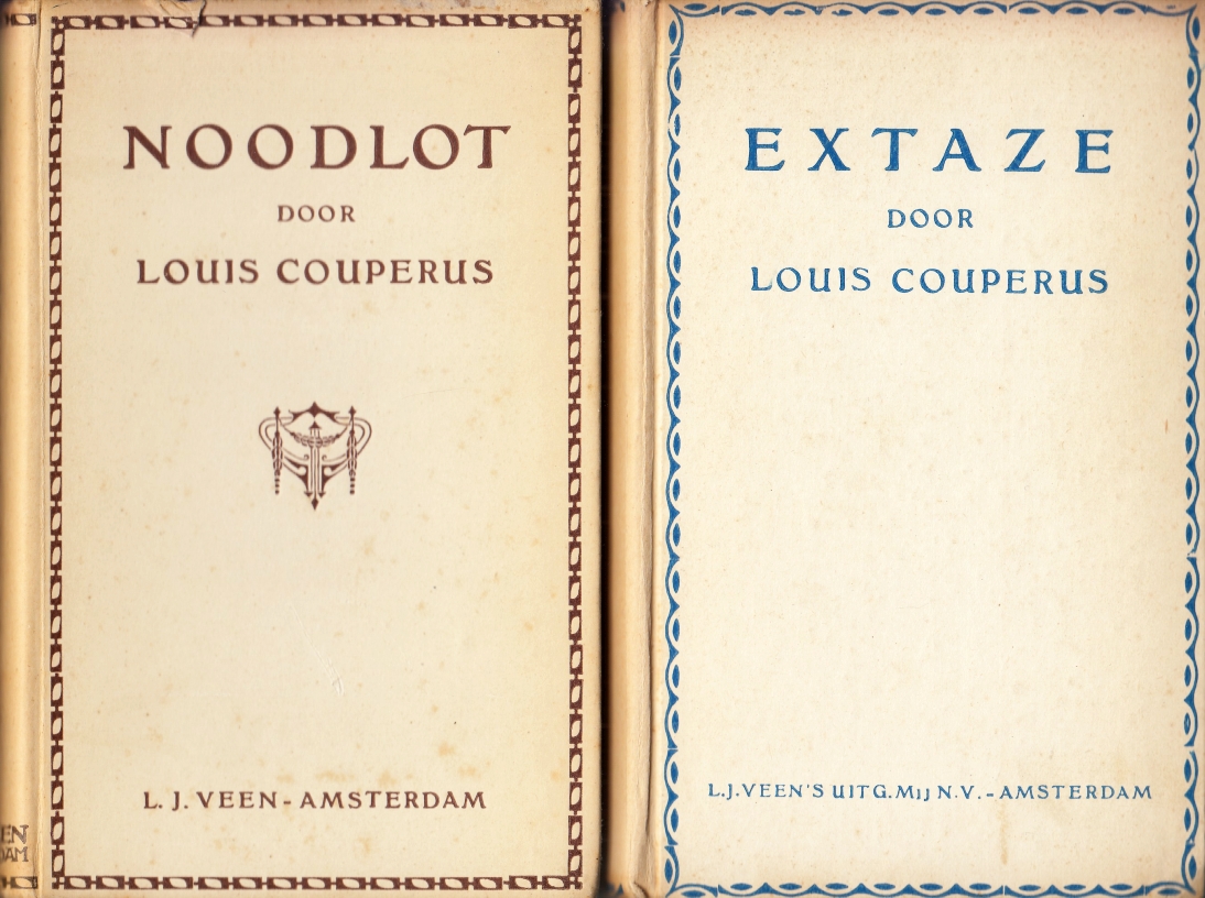 9. COUPERUS, Louis Extaze. Amsterdam, Veen, [1920]. Karton. 192 p. 4e druk, 2e oplage (op dikker papier, met blauwe bestempeling). Rug wat verkleurd, maar een prima exemplaar.