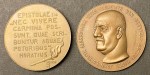 13. DEYSSEL, Lodewijk van Gedenkpenning, ontworpen door L.P.J. Braat. Uitgegeven door de Vereniging voor Penningkunst. Diameter 60 mm. [1943]. Legpenning in geelbruin koper. Half naar links gewende kop. Omschrift ‘Doctor Karel Joan Lodewyk Alberdingk Thym (Lodewyk van Deyssel)’. Signatuur achter het hoofd. Op de keerzijde staat een fragment in het Latijn van Horatius, waarvan de letterlijke vertaling luidt ‘En geen gedichten kunnen leven, die geschreven zijn door waterdrinkers’.