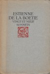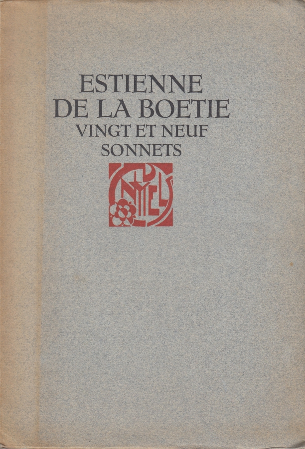 2. BOETIE, Estienne de la Vingt et neuf sonnets. Paris / Maastricht, R.-L. Doyon / Ch. Nypels, 1926. 24 x 17 cm. Gezet uit de letter Grotius (van S.H. de Roos) en gedrukt in rood en zwart in 200 exemplaren op Ossekop-papier van Van Gelder Zonen. 40 p. Niet afgesneden. Omslag deels verkleurd, verder zeer fraai.