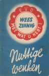 19. (HUISHOUDEN). ECONOMISCHE VOORLICHTINGSDIENST Wees zuinig met wat u hebt. Nuttige wenken. [Den Haag], Departement van Handel, Nijverheid en Scheepvaart, [1941]. Geniet. 16 p. Tekst en tekeningen gedrukt in blauw en zwart. Vlek op p. 3/4, verder netjes.