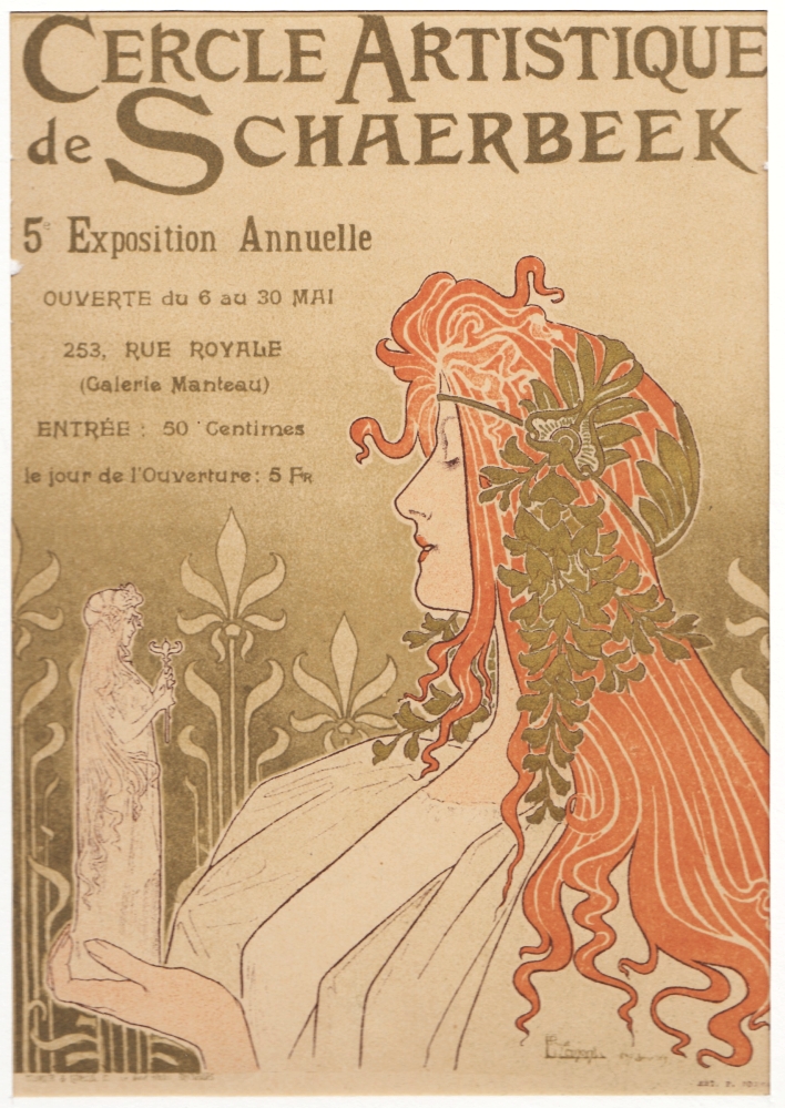 31. PRIVAT-LIVEMONT, Georges Cercle Artistique de Schaerbeek, 5e Exposition Annuelle. Verkleinde herdruk in kleuren, ca. 1910? Bladformaat 33 x 25 cm, afbeelding 21 x 15 cm. In passepartout.
