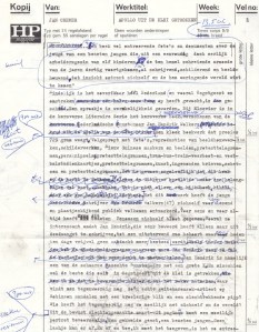Tevens bijgevoegd: hetzelfde typoscript in doorslag, op blauw kopijpapier van HP Magazine.