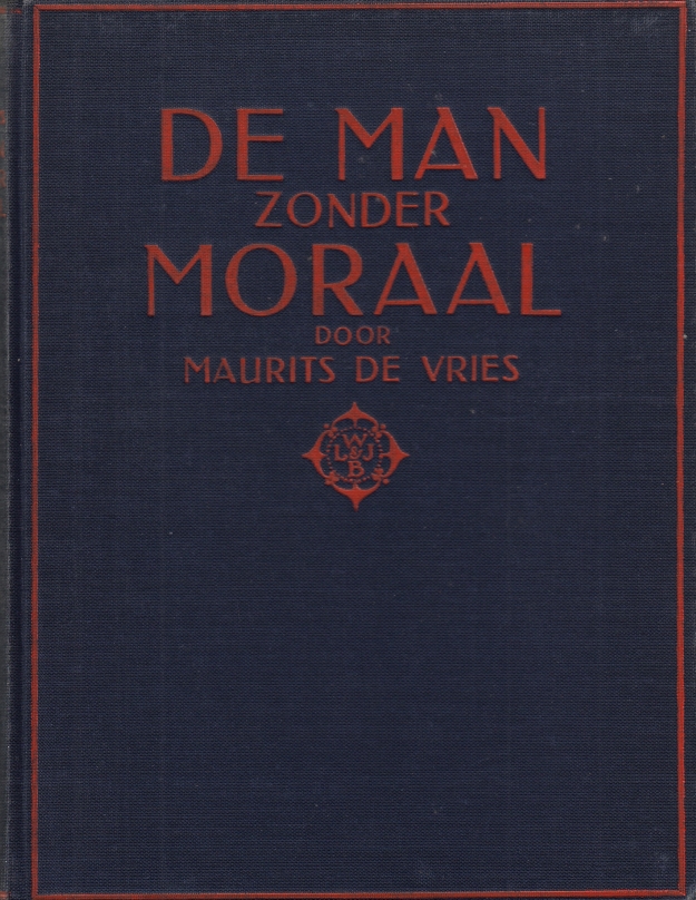 48. VRIES, Maurits de De man zonder moraal. Rotterdam, Brusse, 1930. Linnen. 144 p. Gedrukt in rood en zwart. Achterin 8 p. recensies van het werk van De Vries. 1e druk. Rug iets verschoten.