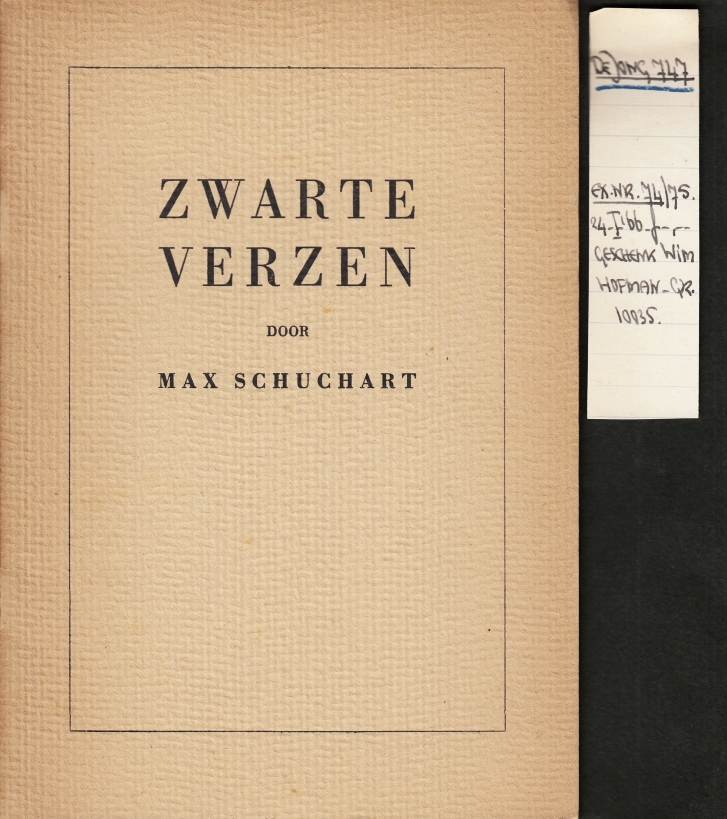 41. SCHUCHART, Max Zwarte verzen. [Amsterdam, eigen beheer], 1943. Ingenaaid. Gedrukt in een oplage van 75 genummerde en gesigneerde exemplaren. (20) p. 1e druk.