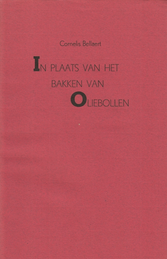 1. BELLAERT, Cornelis In plaats van het bakken van oliebollen. Haarlem, Carlinapers, 1979. 30,2 x 19,0 cm. Ingenaaid met omslag. (32) p. Met de hand gezet en gedrukt in rood, groen, blauw en paars in een oplage van 20 genummerde exemplaren.