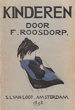 39. ROOSDORP, Frits Kinderen. Amsterdam, S.L. van Looy, 1898. Herbonden in contemporain halflinnen. Voorzijde origineel omslag meegebonden (naar een houtsnede van C.A. Lion Cachet). (8), 80 p. 1e druk. Omslag aan de binnenkant verstevigd met een reep papier. Naam in sierlijk potlood voorin: ‘M. Kriste’.
