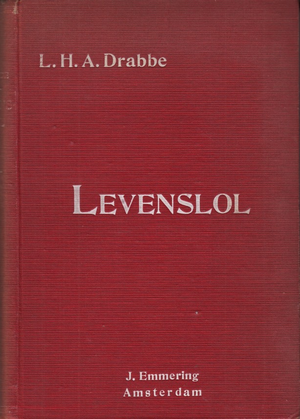 22. DRABBE, L.H.A. Levenslol. Amsterdam, D. Buys Dz., [1901]. Rood linnen met witte bestempeling. (4), 328 p. 1e druk. Rugbestempeling verdwenen, onder- en bovenaan kleine schaafplekjes. Band deels wat verbleekt.
