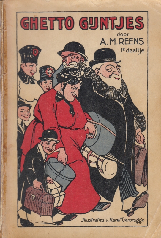 36. REENS, A.M. Ghetto-Ghijntjes 1e & 2e deeltje. Amsterdam, Uitgevers-maatschappij Archipel, [ca. 1918]. Ingenaaid met geïllustreerd omslag. 48; 48 p. Met 9 illustraties van Karel Verbrugge. 2e druk. Rugjes versleten.