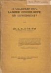 2. ALETRINO, A. Is celstraf nog langer geoorloofd en gewenscht? Amsterdam/ Leipzig, Maas & Van Suchtelen, 1906. Ingenaaid. (8), 172 p. 1e druk. Rug beschadigd, voorzijde omslag en eerste katernen los. Hoekje uit omslag geknipt.