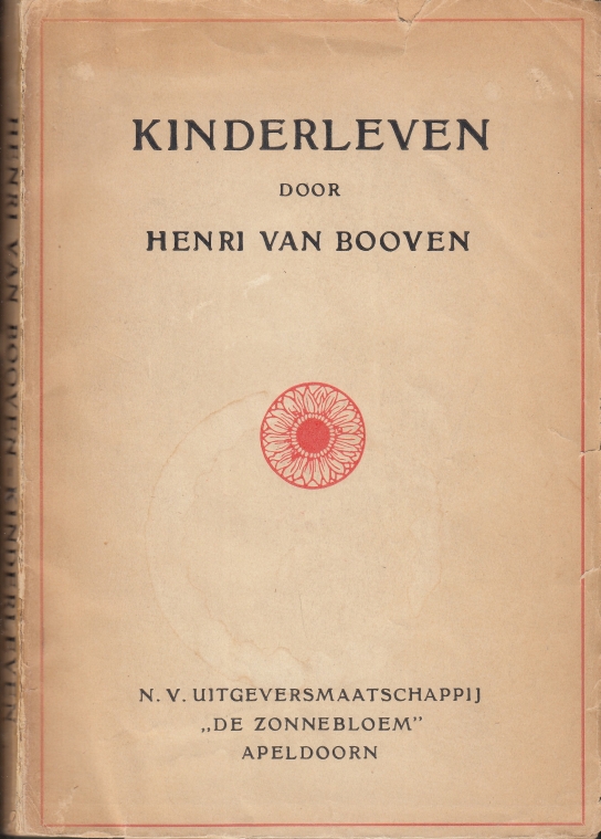 9. BOOVEN, Henri van Kinderleven. Apeldoorn, De Zonnebloem, 1919. Ingenaaid. 120 p. 1e druk. Schuingelezen. Omslag aan rug en achterzijde wat versleten.
