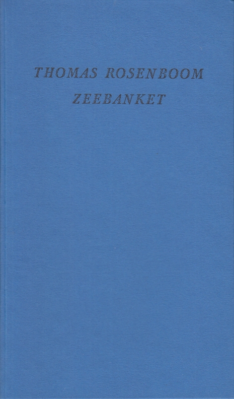44. ROSENBOOM, Thomas Zeebanket. [Groningen], Artistiek Bureau, 2018. Karton. (12) p. Met de hand gezet uit de Goudy Old Style en gedrukt door Boris Rousseeuw (De Carbolineum Pers) op Hahnemühle Kanzler in blauw en zwart in een oplage van 34 door de auteur genummerde en gesigneerde exemplaren.