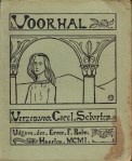 * ‘Met dë oogen dicht/ zit ik dreunend te leven’. Voorin een handgeschreven opdracht [aan de filosoof-psychiater-dichter Julius de Boer (1873-1966)?]: ‘Van den schrijver/ je vriend/ Carel’. Ook met enkele toevoegingen in handschrift: een motto van De Musset, en zie ook p. 55 en 56 (‘aan Paul Kleinpenning’, kennelijk een gemeenschappelijke vriend, 1875-1904). Debuut van Scharten (1878-1950). De ontwerper van het omslag is onbekend (monogram: O.S. of S.O.?).
