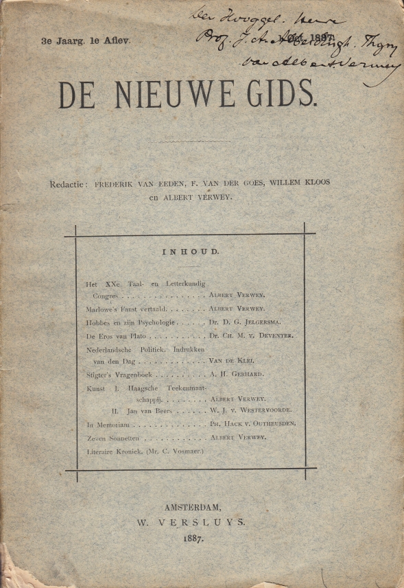 52. VERWEY, Albert De Nieuwe Gids. 3e Jaargang. 1e Aflevering. (1 Oct. 1887). Amsterdam, Versluys, 1887.