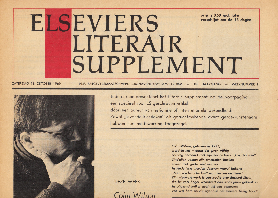 45. ZAAL, Wim (red.) Elseviers Literair Supplement 1969-1972. Ca. 40 nummers. Amsterdam, Uitgeversmaatschappij Bonaventura, 1969-1972. Krantenformaat. 16 p. per nummer. Geïllustreerd. Nette conditie, veel nummers zijn ongelezen.