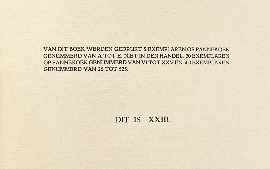 * Eén van de slechts 25 Romeins genummerde luxe-exemplaren op Pannekoek.
