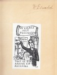 * Voorin het muzikaal ex-libris van de jeugdige Judith Zweerts (1906-2002), een stralende viool in hout gesneden door ‘A.J.D.G.’ alias Julie de Graag (1877-1924) met datering 1917. Zij wordt wel als voorloper van Escher beschouwd. 67 x 58 mm.